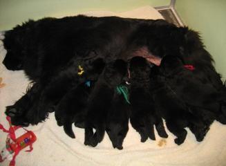 Livy's puppies were born by C-section on May 29th! There are 7 babies - 5 boys and 2 girls, and all are black.