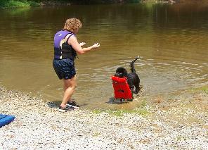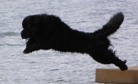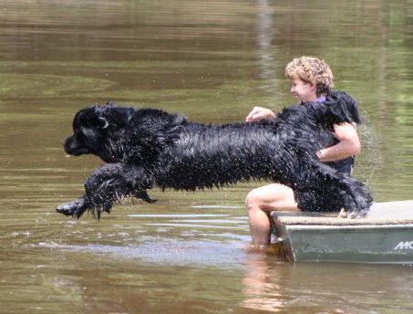 Phoenix jumps from the boat for a retrieve during water training.