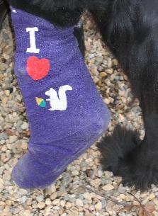 Unfortunately Tip broke her leg in October 2006 and had to have surgery to re-attach the medial malleolus of her tibia. Luckily Tip is such a favorite at the vet hospital that they decorated her cast with her favorite animal - a squirrel!
